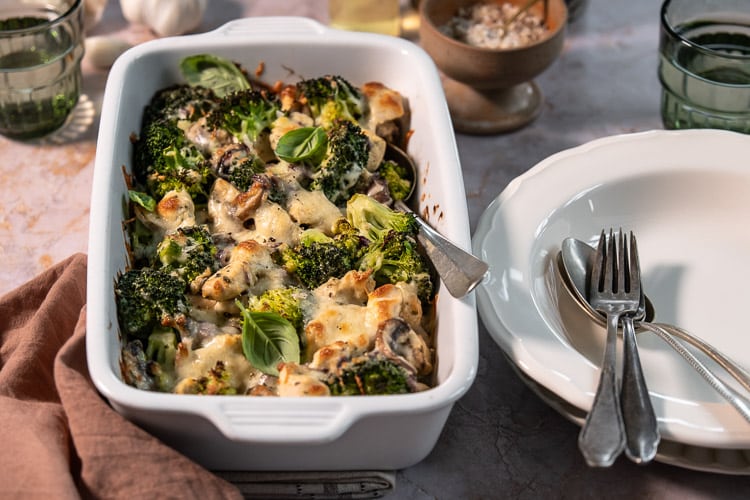Zoals gezegd staat deze kip broccoli ovenschotel binnen een half uur op tafel. De broccoli stoom ik vooraf kort, zodat deze mooi gaar wordt in de oven maar nog wel een lichte bite behoudt.