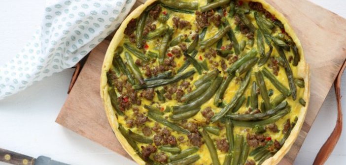 Quiche met sperziebonen en gehakt. Ja. Daar ben ik weer. Ik leef nog… Een soort van dan. Ik begon het me ook al af te vragen, wanneer ik nu weer eens tijd had voor een nieuw recept op de blog. Maar de afgelopen week was een gekkenhuis. Chaos ten top. Helemaal niets voor mij, ik hou altijd van een beetje overzicht. Maar door de gebeurtenissen van afgelopen dagen, was ik niet eens in de búúrt van mijn laptop te vinden. Gelukkig kon ik wel even de keuken in en maakte ik deze quiche met sperziebonen en gehakt klaar. Daar is het nu ook echt weer voor, lekker verwarmend comfortfood!