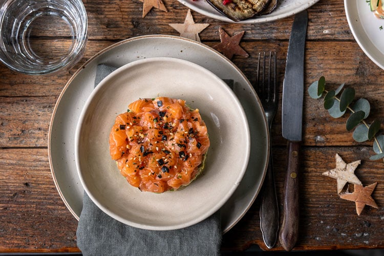 Met feestdagen houd ik ervan om uit te pakken zonder gedoe. Deze zalmtartaar met avocado is precies zo’n gerecht: luxe in uitstraling, maar heel relaxed om te maken. Je kunt de zalm alvast marineren, de groenten en mango alvast snijden, en vlak voor serveren bouw je de torentjes op. Heel fijn als je vooral wilt genieten van je gezelschap aan tafel.