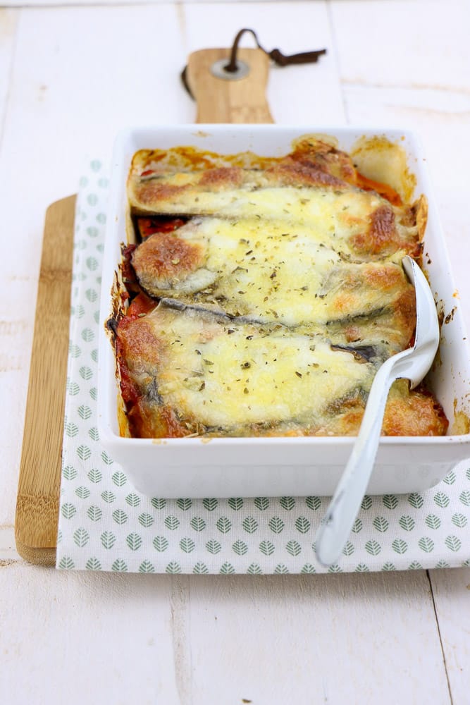 Voor deze zoete aardappel lasagne met spinazie heb ik ook nog aubergine en paprika toegevoegd, wat zorgt voor een rijke en gevulde lasagne. De zachte zoete aardappel en de aubergine zijn de perfecte vervanger voor traditionele lasagnebladen en maken het gerecht net dat beetje gezonder.