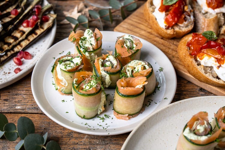 Het fijne aan deze komkommer rolletjes vind ik dat ze zó veelzijdig zijn. Of je nu een borrelplank vult, een makkelijk voorgerecht zoekt voor een etentje, of gewoon een licht hapje wilt maken voor tussendoor: deze rolletjes passen eigenlijk altijd. Op zoek naar meer inspiratie? Dan vind je hier al mijn feestelijke voorgerechten recepten bij elkaar.